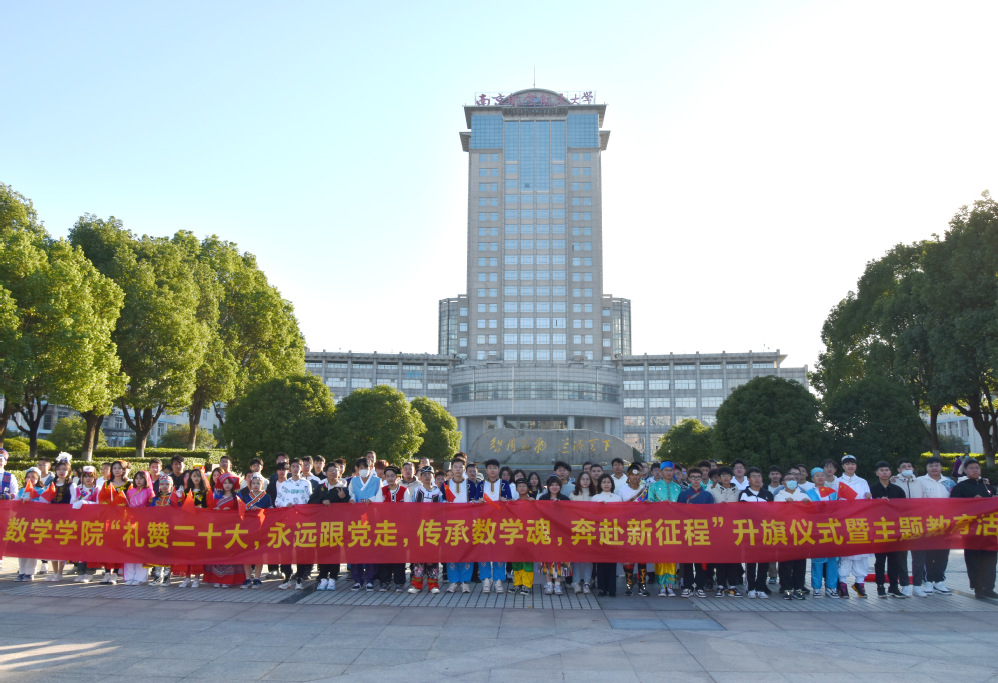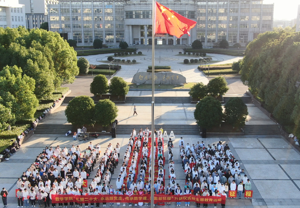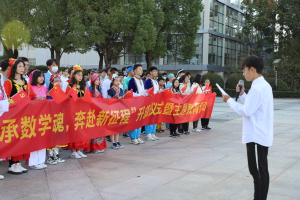 10月10日,beat365亚洲版官方网站在国旗广场举办“礼赞二十大,永远跟党走,传承数学魂,奔赴新征程”升旗仪式暨主题教育活动。学院党委副书记周佼佼,新疆内派教师玛依拉·赛依力、学院团委书记戚月、全体辅导员以及全体预科生、本科生、研究生参加活动。活动由学院2022级本科生谷立煊主持。