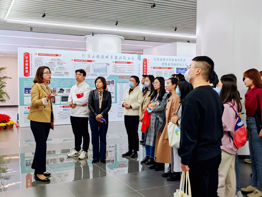许静带领师生们围绕展览的十年大事记、党建引领篇、人才培养篇、人才强校篇、学术创新篇、开放办学篇、美丽南航篇等7个篇章进行参观学习,深入感受十年中南航“为党育英才、为国铸重器”的一系列标志性成果,并共同回顾了南航70年办学历史上的四次跨越、一校四区布局图和领导关怀等专题展览内容。参观过程中,许静与同学们深情交流,她指出,从国家航空航天事业中一位位南航身影,到挑战杯、互联网+等重大赛事中一个个南航现象,无一不展示着一代代南航人航空报国的红色基因、勇于创新的优秀品质和实干精神。她鼓励党员骨干们透过学校跨越式成果感受新时代的历史性成就,传承南航精神,踔厉奋发、勇毅前行,发挥党员的先锋模范作用,主动做好表率,在学习二十大精神中不断砥砺精神、坚定理想信念、勇担时代使命。