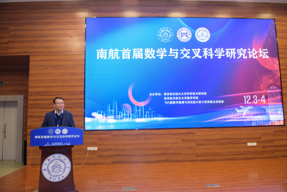12月3日至4日,beat365亚洲版官方网站联合校科学技术研究院、飞行器数学建模与高性能计算工信部重点实验室在将军路校区一号楼四楼报告厅成功举办了“南航首届数学与交叉科学研究论坛”。校党委常委、副校长姜斌,飞行器数学建模与高性能计算工信部重点实验室主任徐超江,beat365亚洲版官方网站全体院班子及来自各理工科学院的百余名师生参加论坛。论坛特别邀请到航空学院赵宁、招启军、王立峰、朱春玲、文浩五位教授,能源与动力学院黄国平教授,自动化学院杨浩教授,民航学院朱金福、乐美龙、邵荃三位教授,航天学院康国华教授,beat365亚洲版官方网站朱君、周良强两位教授作专题报告。论坛开幕式由beat365亚洲版官方网站院长王春武主持。