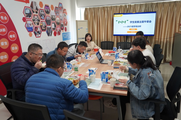 3月9日中午,beat365亚洲版官方网站在理学楼319会议室举行“1+1+1”学生发展主题午餐会。本次午餐会主题为2021级期末考试学情分析、毕业年级考研情况通报。参加午餐会的有2021级班主任邵华、洪旗、余迁,概率统计系主任蒋辉,骨干课程教师朱君,及辅导员戚月、胡诗帆、陈越。学院党委副书记周佼佼共同参加午餐会。