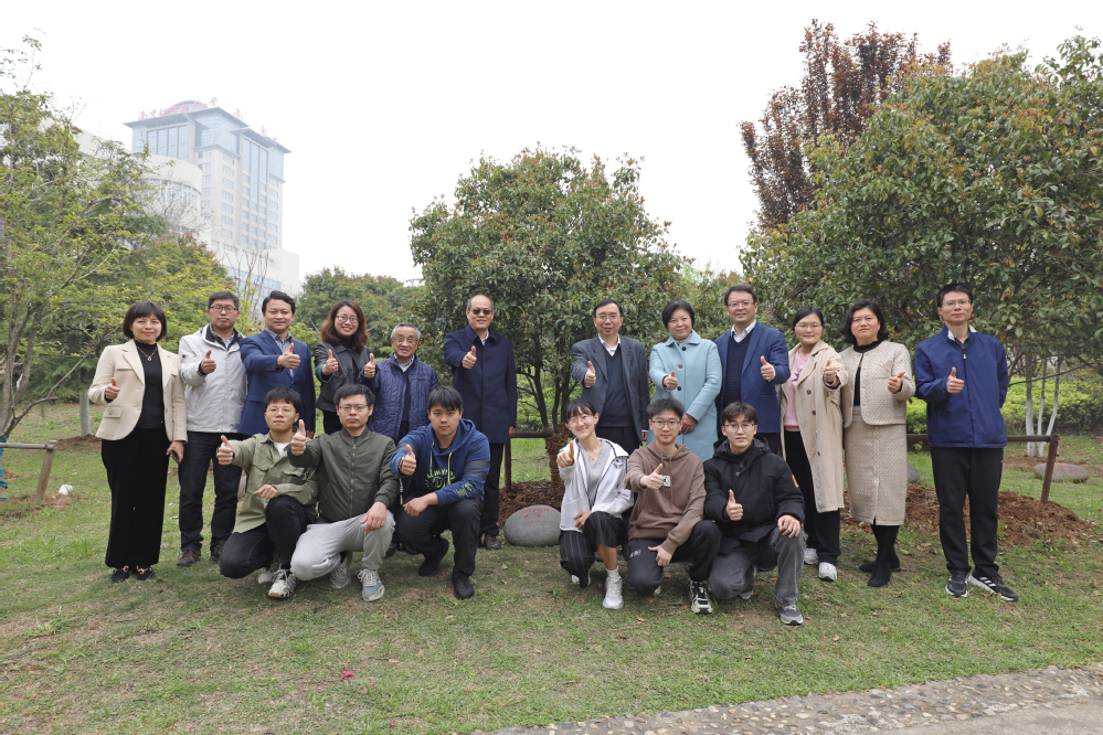 此外,张平院士本次到访还为我校院士林再添新绿。报告会前,在参会领导以及部分师生的陪同下,张平院士前往院士林,与师生携手挥锹,一起培土、浇水,种下一棵桂花树,并和大家合影留念。