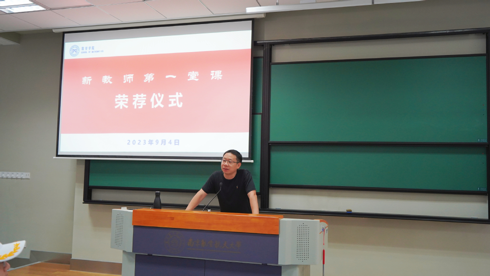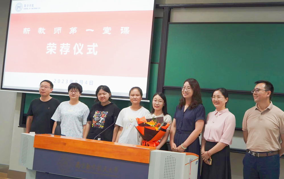 为增强新入职教师的职业责任感和幸福感,不断推动学院师德师风建设,9月4日上午,beat365亚洲版官方网站党委书记许静、院长助理吴健、概率统计系主任蒋辉、大学数学教学与研究中心主任朱晓星以及教学办老师们为新教师索永强举办了“第一堂课”荣荐仪式。