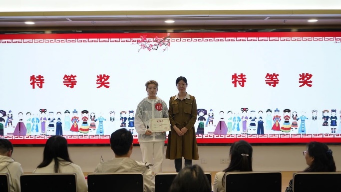 经过赛制积分计算,第二届民理知识竞赛决赛结果发布:机电学院罗曦同学荣获特等奖,经管学院苏尔亚木同学荣获一等奖,beat365亚洲版官方网站龙熙同学荣获二等奖,机电学院穆再排尔同学荣获三等奖。评委老师依次为获奖同学颁发荣誉证书及奖品。