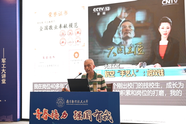讲好军工故事,传承红色基因,“航空”手艺人胡双钱,借对航空事业的执着追求和精湛技艺,成为中国航空制造领域的佼佼者。他的事迹和精神,展现了新时代工匠的风采,激励着更多人南航青年投身于国家的科技进步与产业发展中,在基础学科中深耕细作,希望更多南航青年能够永葆家国情怀,坚定创新自信,深耕基础学科研究,着力攻克关键核心技术,勇于攀登科技高峰,为建设世界科技强国作出新的更大的贡献。