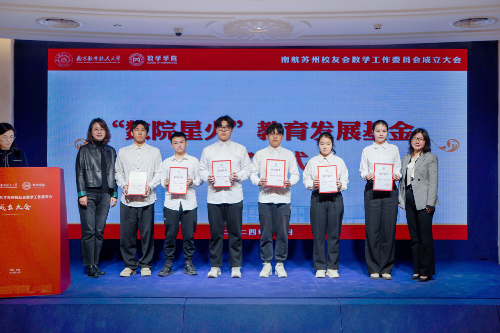 星光熠熠,以传薪火,在各届各地院友的支持助力下,学院设立了“数院星火”教育发展基金,并面向学生设立“数院星火”特别奖助学金。会上,周晓英和许静为2024年度获奖学生颁发获奖证书。