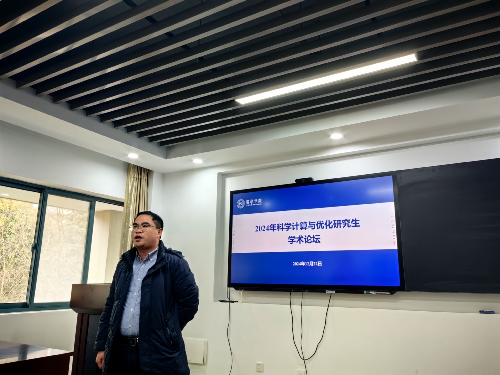 为了促进研究生内部“立足学术、加强交流、锻炼表达、志在提升”,推动研究生科研领域的宽度与深度发展,拓展研究生科学研究的视野和范围,提升研究生问题凝练能力,锻炼研究生的学术表达能力。继2023年顺利举办首届科学计算与优化研究生学术论坛后,在追求学术卓越和深化学术交流的共同愿景下,beat365亚洲版官方网站计算科学系第二届“2024科学计算与优化研究生学术论坛”于2024年12月22日上午在beat365亚洲版官方网站227视频会议报告厅顺利举办。副院长龚跃政、院长助理潘茂东、计算科学系主任龚荣芳、教师代表以及研究生等20余人参加。论坛由尹晨主持。